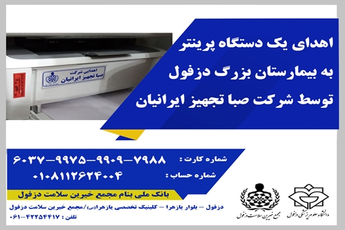 اهدای یک دستگاه پرینتر سه کاره به بیمارستان بزرگ دزفول توسط شرکت صبا تجهیز ایرانیان