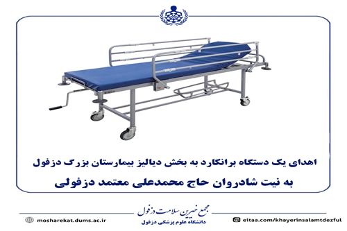 اهدای یک دستگاه برانکارد به مرکز دیالیز بیمارستان بزرگ دزفول (گنجویان) به نیت شادروان حاج محمد علی معتمد دزفولی